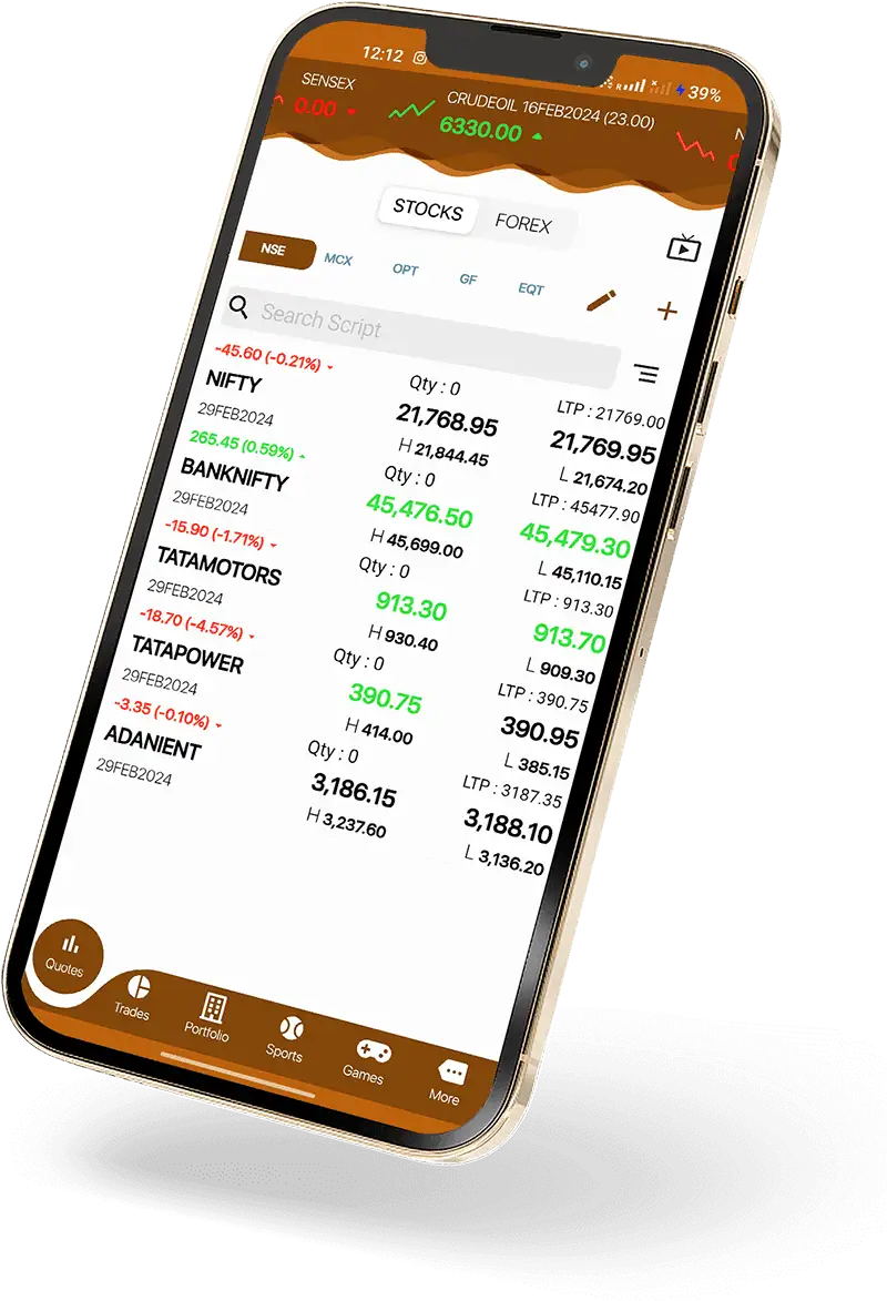 Welcome to India’s Leading Dabba Trading Platform & App! We empower you to tailor your investment portfolio effortlessly. With access to diverse markets like stocks and commodities, and indices, our platform makes investing simple and effective. Start customizing your financial journey today!